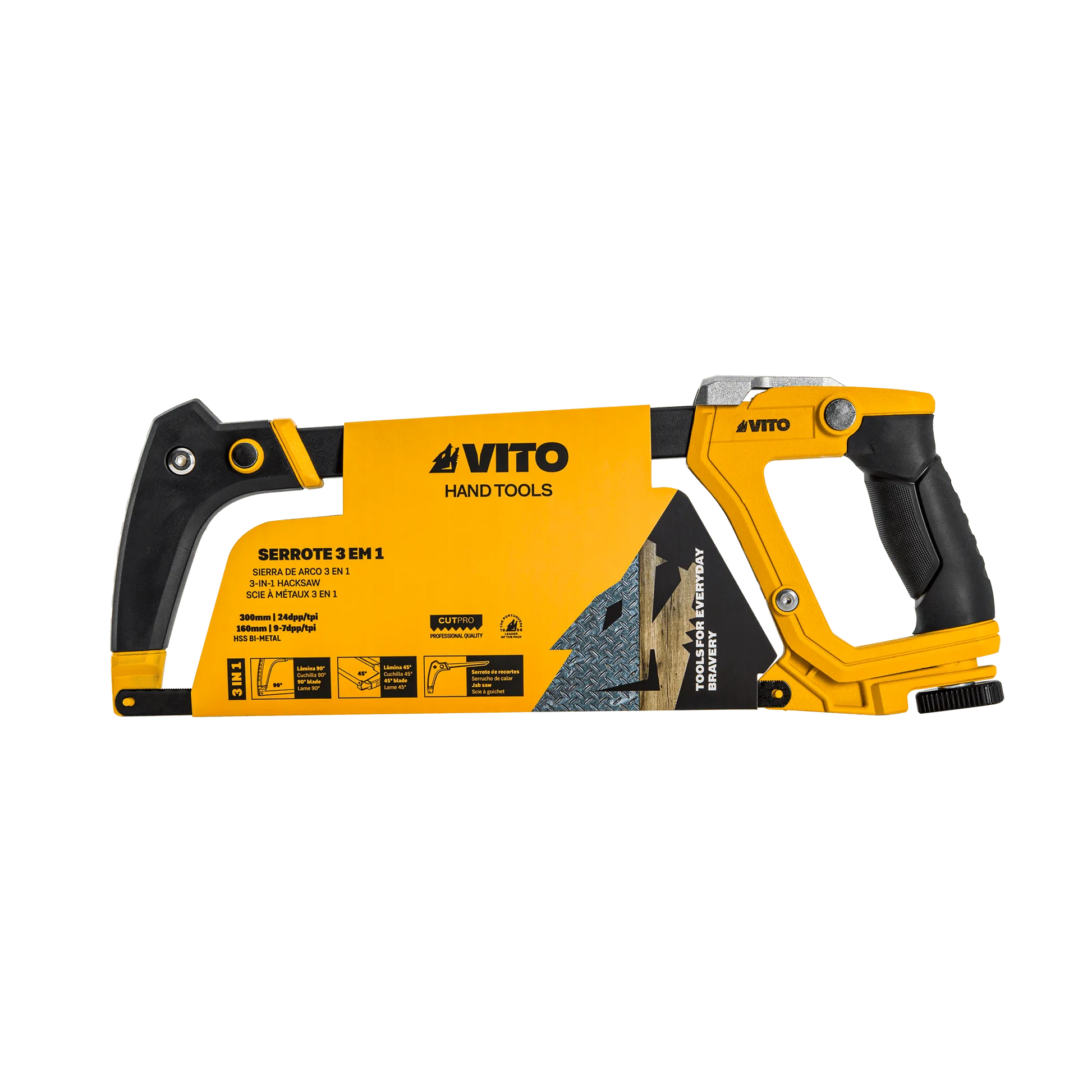 La Sierra de Arco 3 en 1 de VITO (VIS3E1) es adecuada para realizar cortes versátiles a 45º y 90º, y también se puede transformar en un serrucho de punta para mayor practicidad.