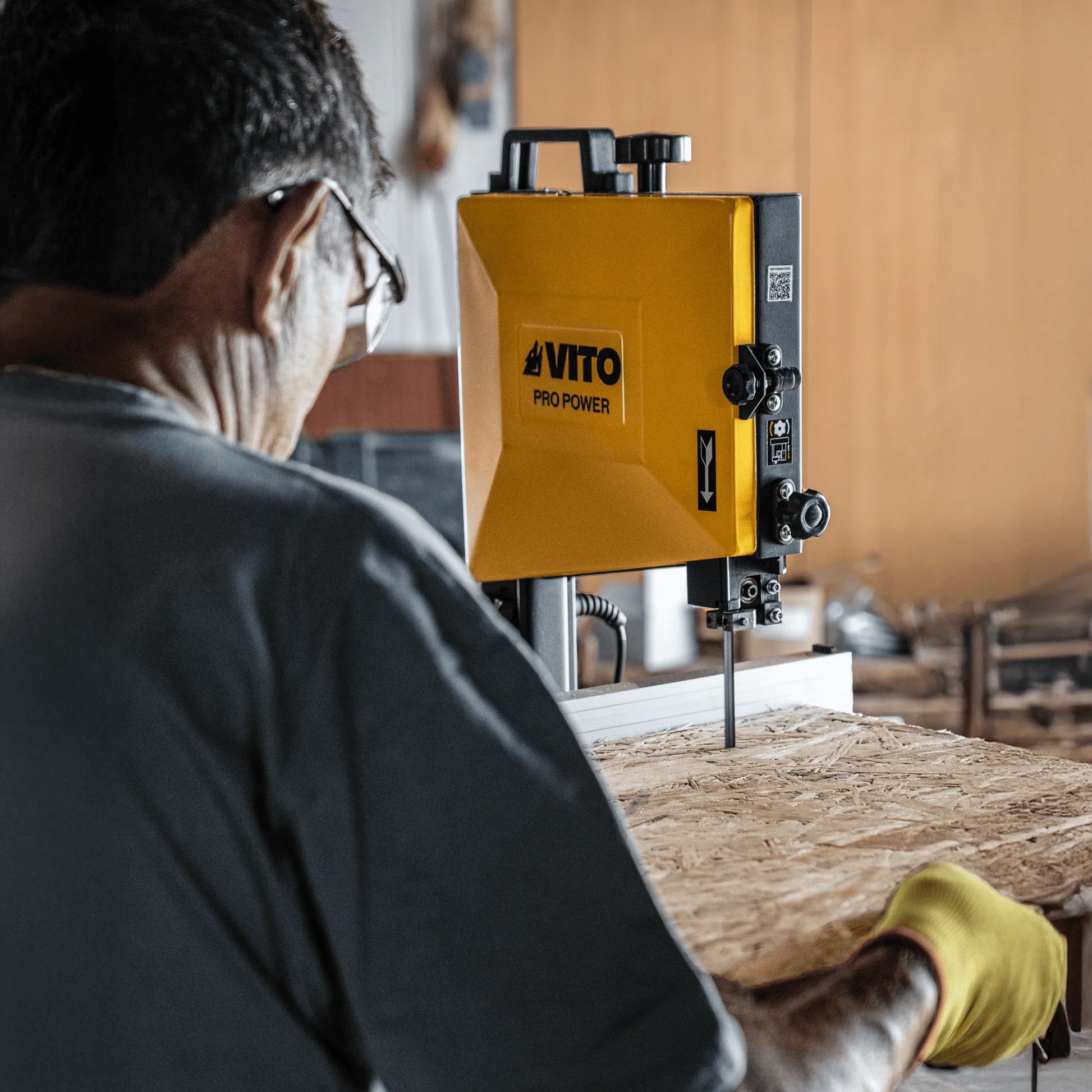 La Sierra de Cinta Vertical 350W de VITO es una herramienta compacta, ideal para cortes precisos en madera.